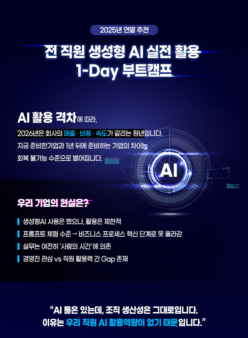 일정 : 2025-11-01 / 기업 맞춤 일정 협의 가능합니다. 02-2036-8323으로 문의주세요.