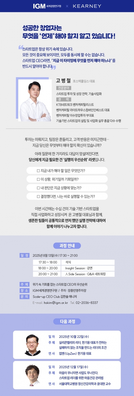 지속 가능한 발전을 이루는 스케일업 CEO 양성.